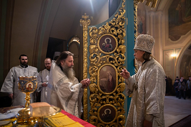 По окончании Литургии была совершена великая архиерейская панихида, за которой верующие молились о родных и близких, уже окончивших земной путь. За этим заупокойным богослужением, призванным восполнить отсутствующие в дни поста ежедневные поминовения усопших, возносилась общая молитва к Богу о милости по отношению к перешедшим в вечность, прощении им их грехов. Для усопших уже окончено время земных подвигов, а от ныне живущих они ждут именно этого дара любви – молитвы.