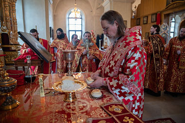 По завершении Литургии и крестного хода была прочитана особая молитва на раздробление артоса, который затем раздавался верующим.
