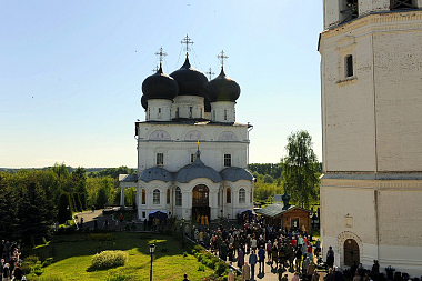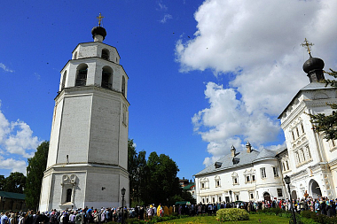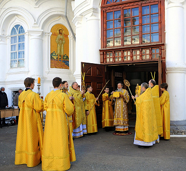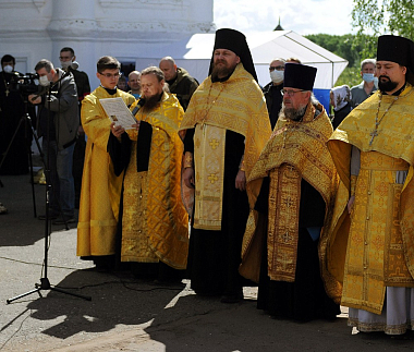 В связи с пандемией богослужение совершалось на площади перед Успенским собором монастыря с учетом всех рекомендаций Роспотребнадзора.