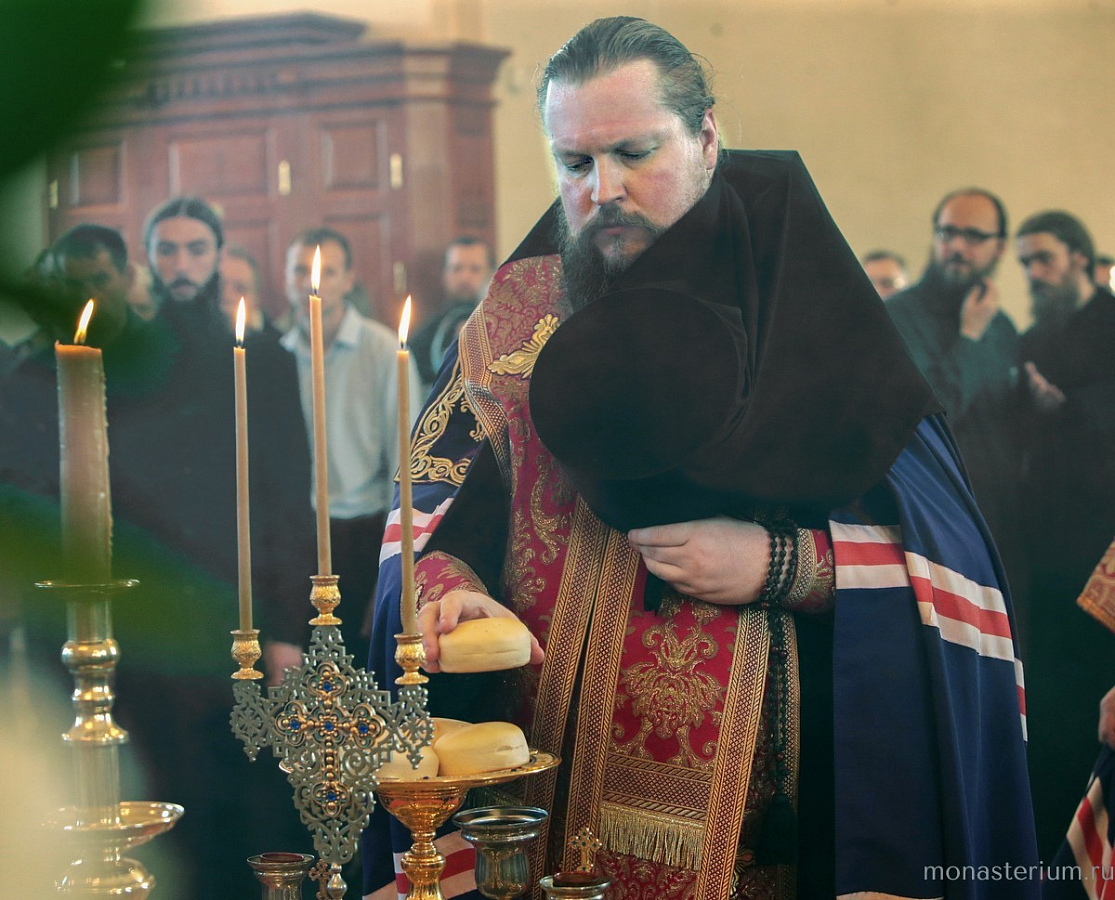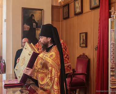 По окончании Литургии и славления праздника митрополита Марка приветствовал игумен монастыря игумен Исаакий (Иванов).