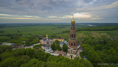 Неслучайным было посвящение этой обители апостолу и евангелисту Иоанну Богослову. Первые иноки, поселившиеся на берегу полноводной Оки, несли с собой чудотворную икону апостола Иоанна Богослова, написанную в VI столетии в Византии мальчиком-сиротой. Устремленный к небу дух монахов нашел свое отражение в образе любимого ученика Христа, чьим символом служит парящий на незримой духовной высоте орел.