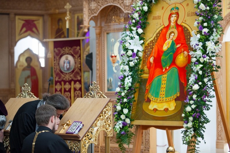 В рамках реализации программы общецерковных мероприятий к 100-летию начала эпохи гонений на Русскую Православную Церковь в день отстранения от престола святого страстотерпца императора Николая II и день явления Державной иконы Божией Матери, воспринятого современниками как чудесный знак заступничества Царицы Небесной о земле Русской, в центре соборного храма была установлена для поклонения икона Божией Матери «Державная».