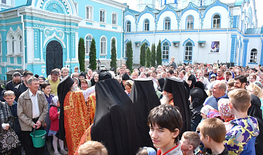 Богослужебные песнопения исполнил праздничный хор обители (регент – Сергей Погорелов) и братский хор (регент – иеромонах Глеб (Мандзяк)).