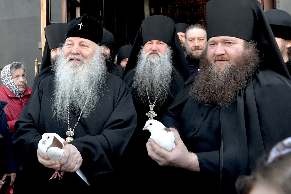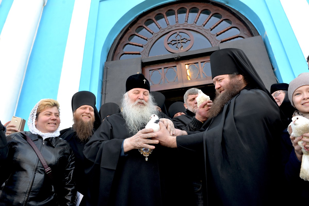 В завершение богослужения глава Липецкой митрополии преподал прихожанам Божие благословение и выпустил в небо белых голубей с порога собора. Эта древняя традиция символизирует освобождение человечества от власти тьмы Спасителем-Христом, воплотившимся от Девы Марии.