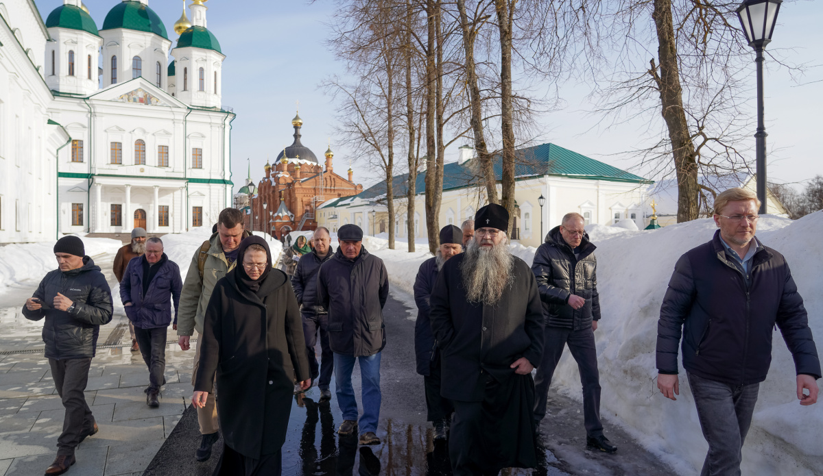 Правящего архиерея сопровождали настоятель этой обители игумен Никон (Ивашков), директор АНО «Управляющая компания по развитию Саровско-Дивеевского кластера Нижегородской области» Игорь Филиппов, представители подрядных организаций.
