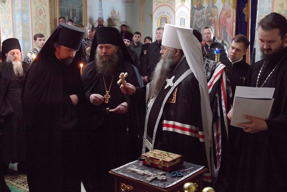 В надвратном храме в честь преподобного Нектария Киево-Печерского правящий архиерей совершил монашеский постриг двоих насельников обители.