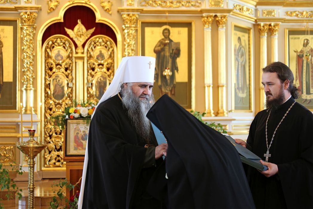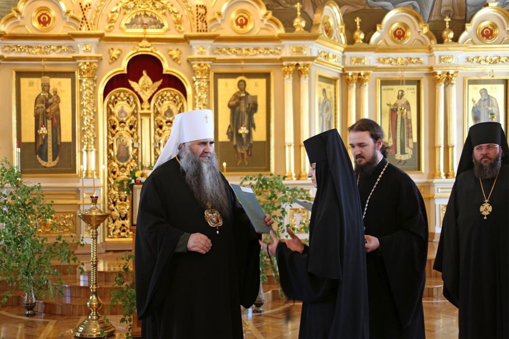 В праздник Святой Троицы митрополит Нижегородский и Арзамасский Георгий вручил двадцать одной сестре Свято-Троицкого Серафимо-Дивеевского женского монастыря дипломы об окончании богословских курсов.