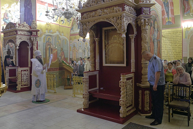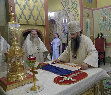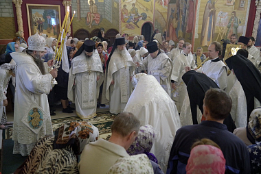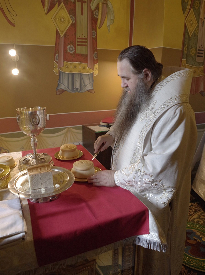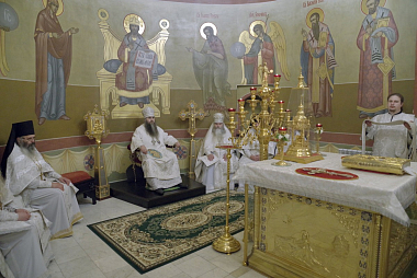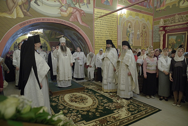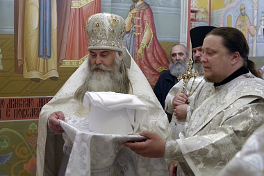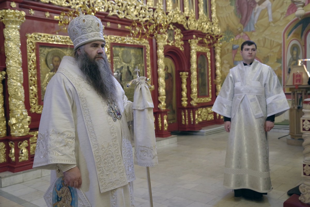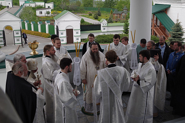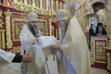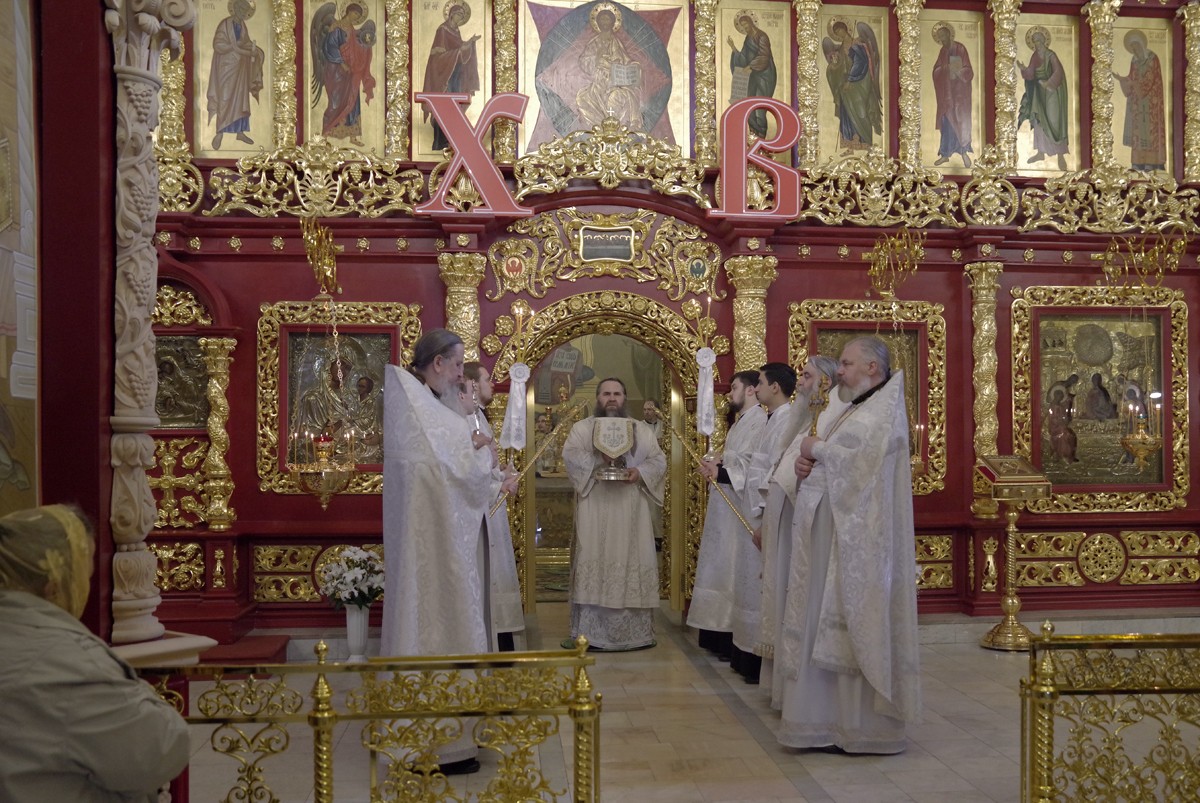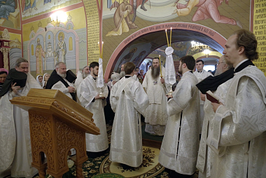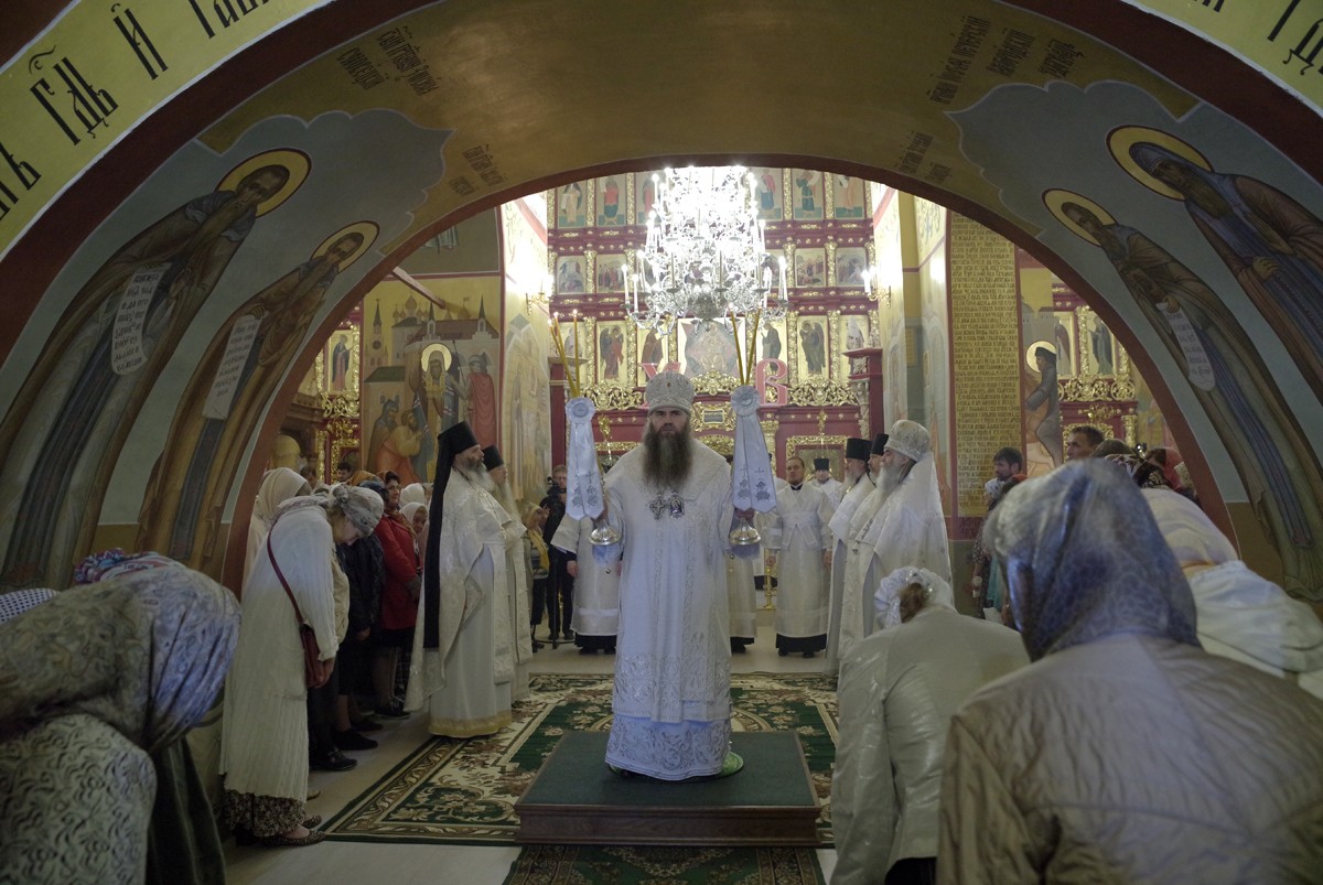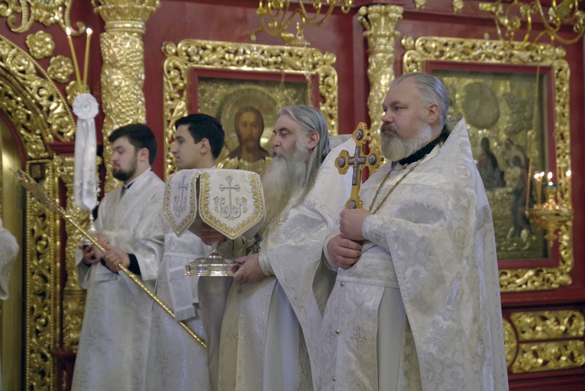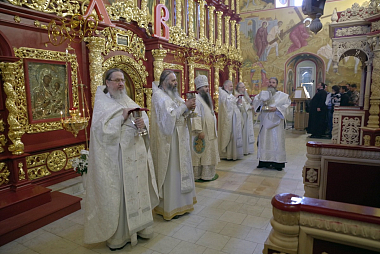 Правящему архиерею сослужили игумен монастыря архимандрит Тихон (Затёкин) с братией в священном сане.