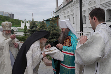 Архимандрит Тихон в приветственном слове выразил главе Нижегородской митрополии благодарность за богослужение, совершенное в престольный праздник монастыря, и архипастырскую заботу об обители.
