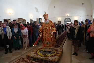 Перед началом Божественной литургии в монастырь была принесена крестным ходом Толгская икона Божией Матери. В течение недели святыня будет находиться в монастыре.