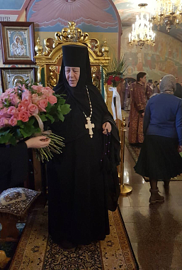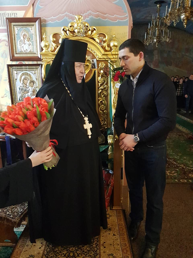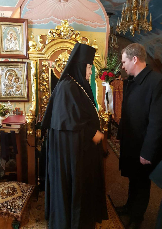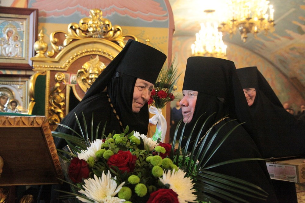 Затем прозвучали поздравления с днем рождения в адрес настоятельницы монастыря игумении Варвары (Третьяк).