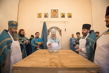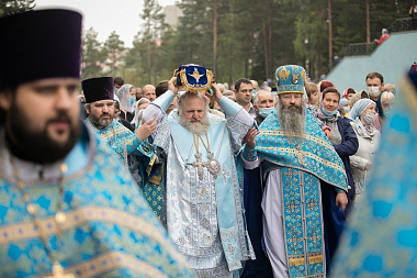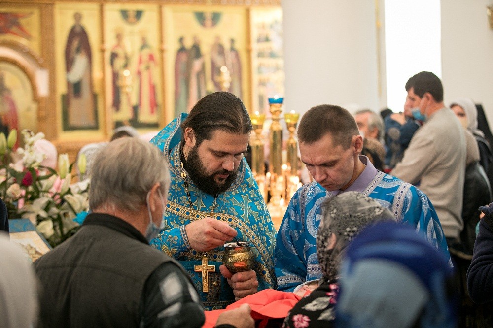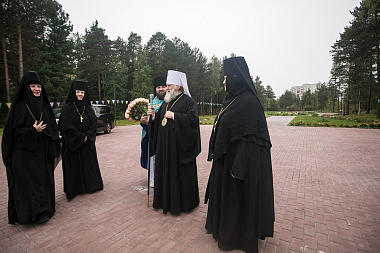 За богослужением молились настоятельница женского монастыря иконы Божией Матери «Умиление» в Сургутеигумения Георгия (Алгинина) с сестрами обители, настоятельница женского монастыря Покрова Божией Матери г. Верхотурья игумения Магдалина (Сулеменева), настоятельница Старо-Покровского женского монастыря г. Покровска игумения Олимпиада (Шуртина), строители и благотворители монастыря.