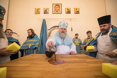 Его Высокопреосвященству сослужили благочинный Нефтеюганского округа протоиерей Николай Матвийчук, благочинный Сургутского городского округа протоиерей Антоний Исаков, благочинный Нижневартовского городского округа протоиерей Сергий Шевченко, благочинный Сургутского районного округа протоиерей Владислав Бронников, секретарь управляющего епархией иеромонах Антоний Кирпичев, духовник епархии иеромонах Владимир Ванюков, духовенство монастыря. Диаконский чин возглавил диакон Даниил Матвеев.