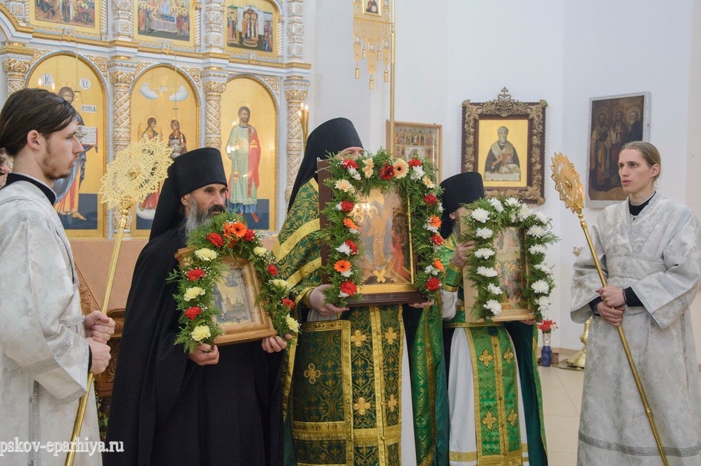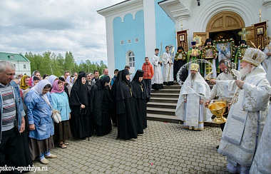 28 мая 2017 года, в Неделю 7-ю по Пасхе, святых отцев I Вселенского собора, день памяти святых преподобных Евфросина и Серапиона Спасо-Елеазаровских, прославления преподобного Никандра Псковского в честь избавления от морового поветрия и воспоминание заветного крестного хода из Никандровой пустыни в город Порхов, митрополит Псковский и Порховский Евсевий совершил Божественную Литургию.