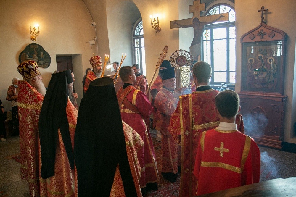 По окончании Литургии Его Высокопреосвященство произнес проповедь, после чего был отслужен торжественный молебен на начало нового учебного года.