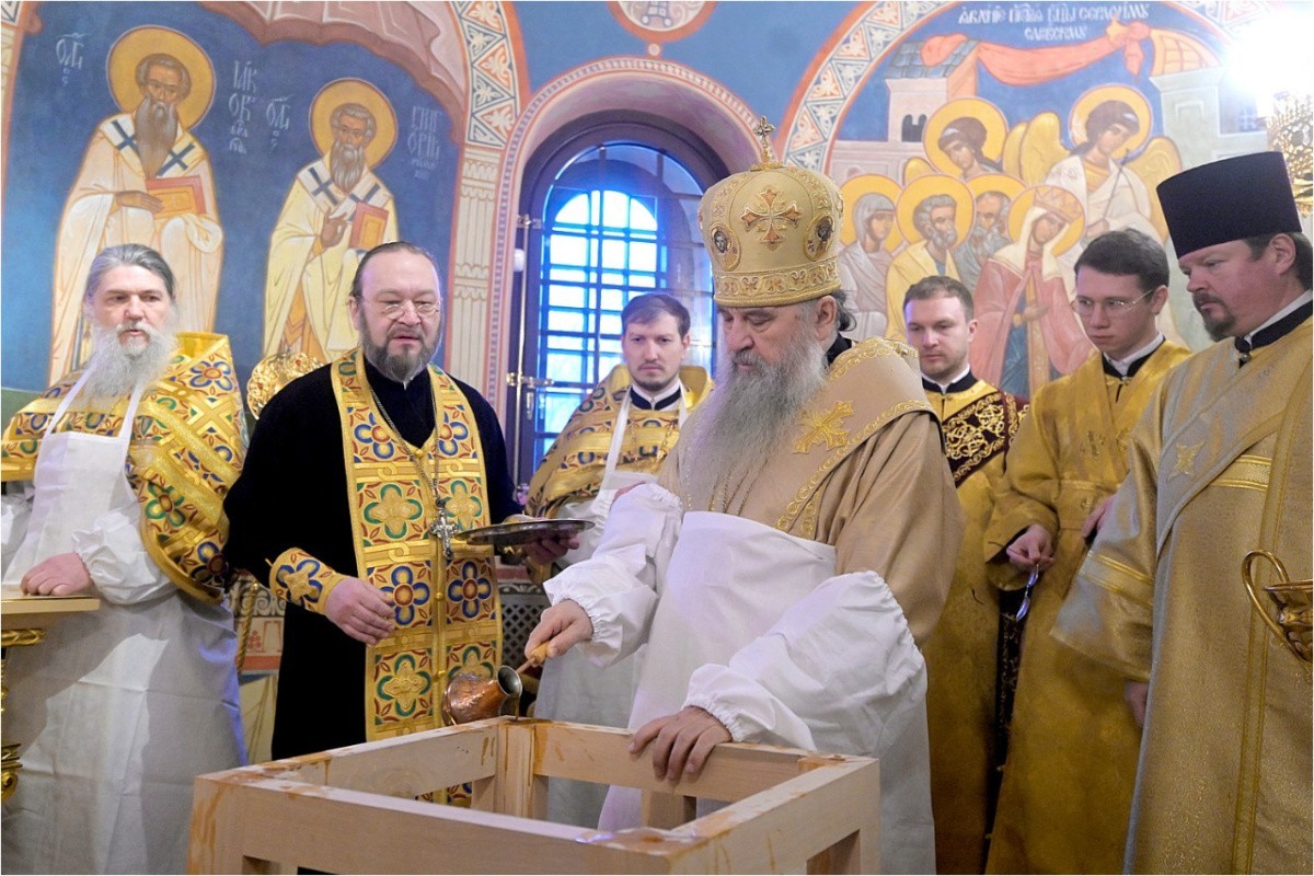 Его Высокопреосвященству сослужили протоиерей Александр Румянцев, старший священник обители иерей Дионисий Харин, клирики монастыря и другие священнослужители.