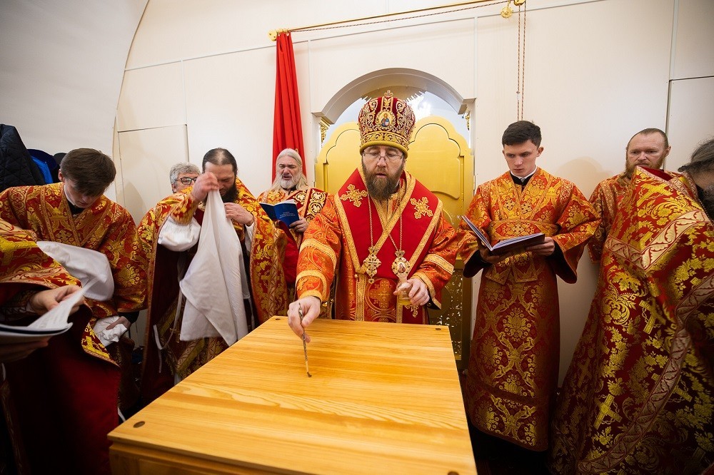 «Сердечно поздравляю вас с престольным днем этого храма, в этом году исполняется 200 лет с того дня, как он был освящен, – сказал архипастырь. – В этом году также исполняется 210 лет со дня основания этого монастыря и 30 лет со дня освящения храма уже в наше время. Он был освящен епископом Нектарием во имя святого благоверного князя Димитрия Донского, потому что здесь тогда находилось военное училище и этот храм освящался как воинский – для учащихся в этом учебном заведении. Но потом был ремонт, престол был сдвинут, и после этого храм был освящен иерейским чином.
