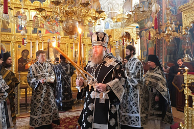 После сугубой ектении митрополит Савва вознес молитву об избавлении от вредоносного поветрия.