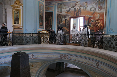 По прибытии в обитель митрополит Савва поклонился гробнице Святейшего Патриарха Иова.