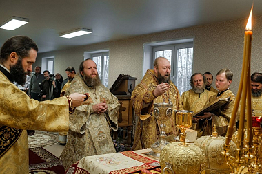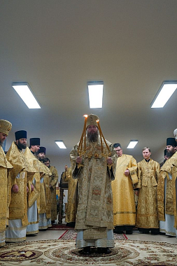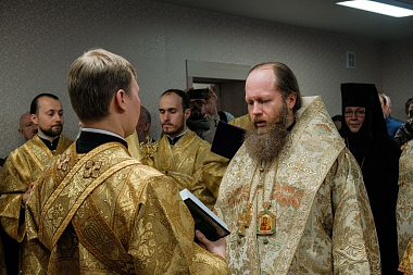 Его Высокопреосвященству сослужили епископ Ржевский и Торопецкий Адриан, епископ Бежецкий и Весьегонский Филарет, благочинный монастырей и монастырских подворий архимандрит Аркадий (Губанов), благочинный Осташковского округа протоиерей Димитрий Марковский, и.о. настоятеля (игумена) Новоторжского Борисо-Глебского мужского монастыря архимандрит Амфилохий (Желябовский), директор ТЕПСОШ имени свт. Тихона Задонского протоиерей Леонид Водолазский, духовенство епархии.