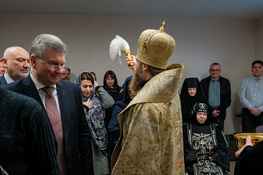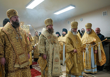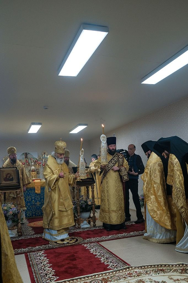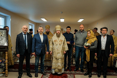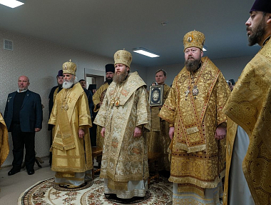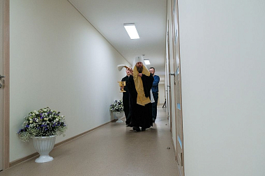 По окончании Литургии состоялось торжественное открытие и освящение новых трехэтажных корпусов социальной гостиницы «Дочки-матери». Чин освящения совершил митрополит Савва.