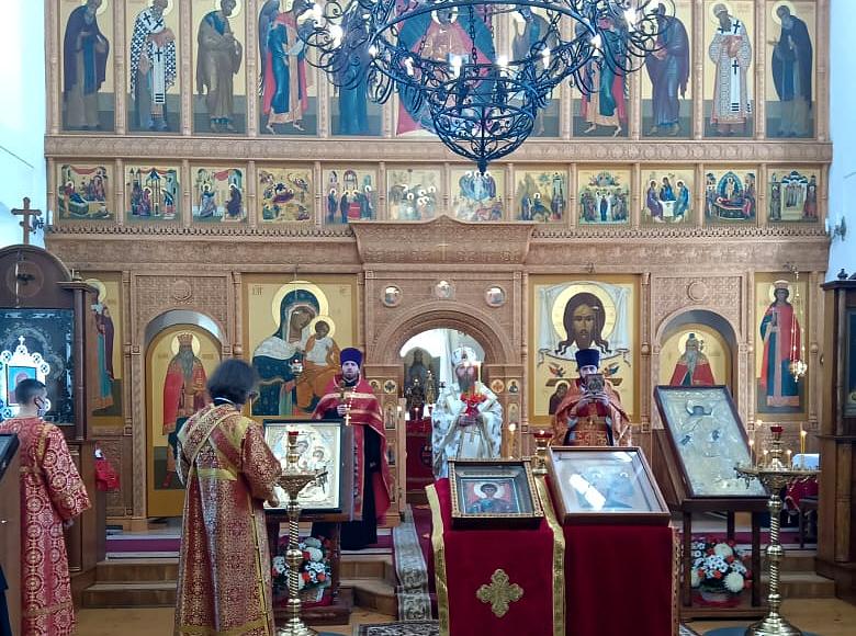 После сугубой ектении владыка вознес молитву о прекращении вредоносного поветрия, утвержденную Патриархом Московским и всея Руси Кириллом.