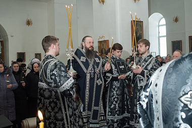 Службу Страстям Господним в Успенском женском монастыре г. Нижнего Ломова возглавил митрополит Пензенский и Нижнеломовский Серафим.