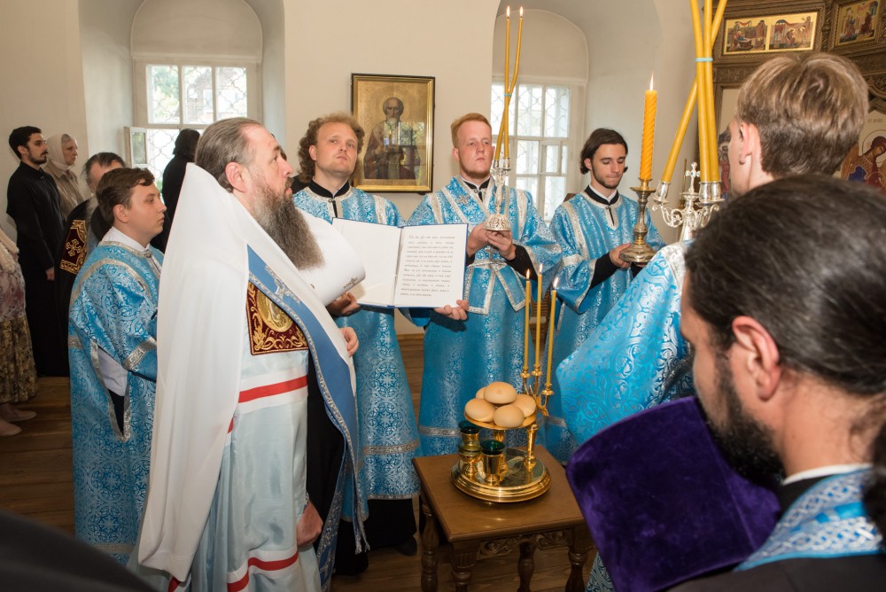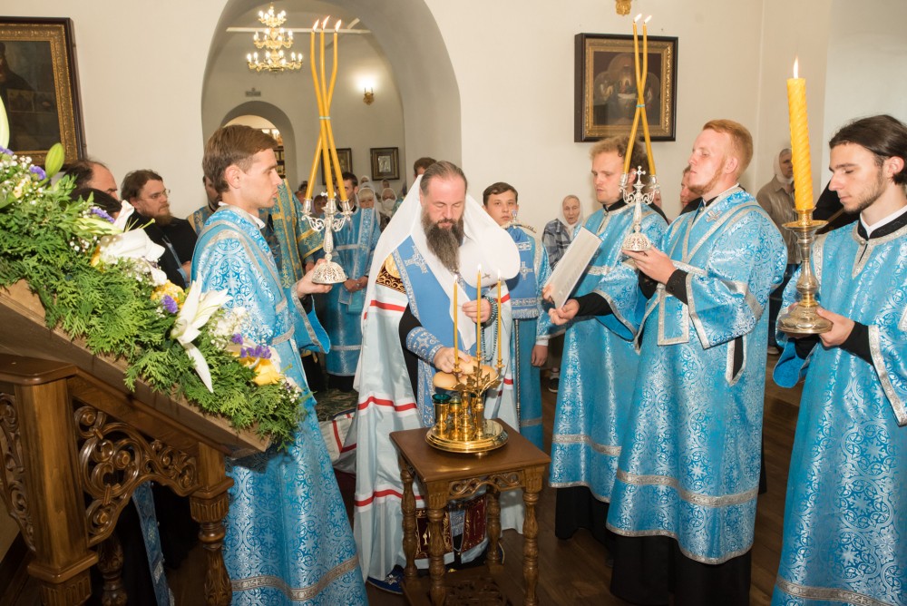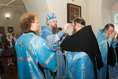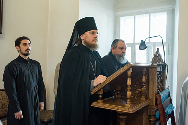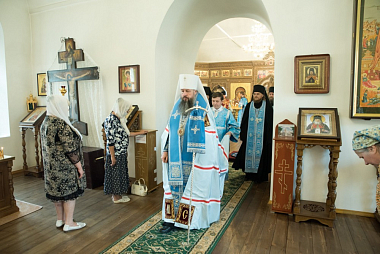 Его Высокопреосвященству сослужили наместник Спасо-Преображенского мужского монастыря игумен Сергий (Зайчиков) и братия обители в священном сане.