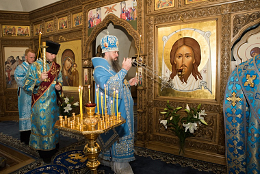По окончании всенощного бдения правящий архипастырь поздравил всех с престольным праздником и произнес для паствы проповедь.