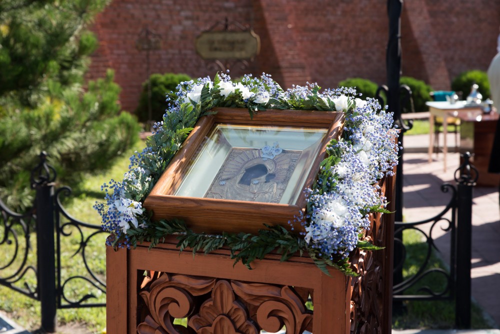 По отпусте Литургии было совершено славление перед чудотворной иконой Нижнеломовской Казанской Божией Матери.