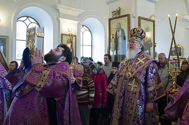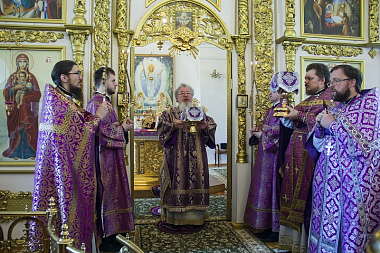 В совершении Божественной литургии по чину святителя Василия Великого Его Высокопреосвященству сослужили секретарь Воронежского епархиального управления протоиерей Андрей Скакалин, благочинный Монастырского церковного округа иеромонах Алексий (Сукачев) и клирик Преображенского храма монастыря священник Дионисий Агапов.