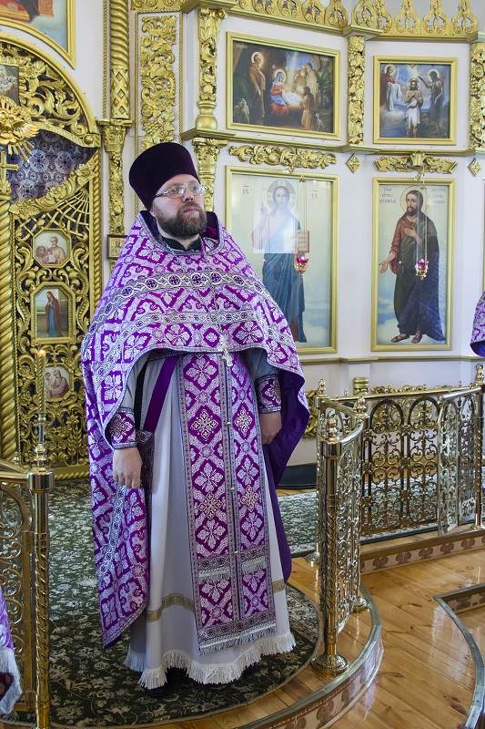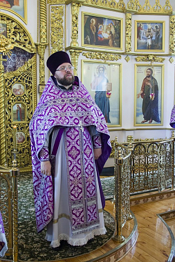 По запричастном стихе проповедь перед молящимися о духовном подвиге христиан во дни Великого поста произнес иерей Дионисий Агапов.