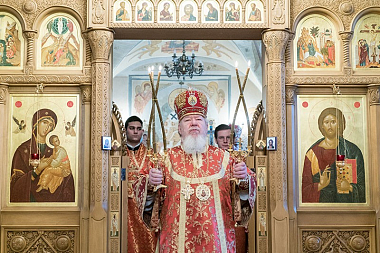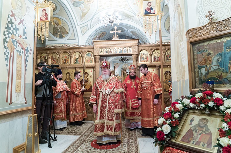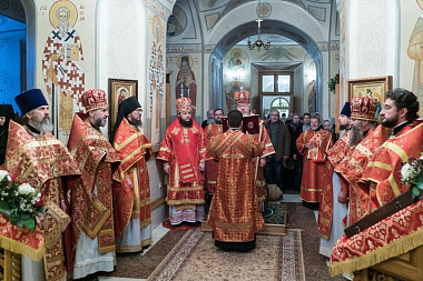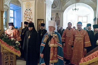 В нижнем храме Алексиевского собора обители Его Высокопреосвященству сослужили епископ Борисоглебский и Бутурлиновский Сергий, секретарь Воронежского Епархиального управления протоиерей Андрей Скакалин, ректор Воронежской духовной семинарии священник Роман Ткачев, наместник Свято-Успенского Дивногорского монастыря игумен Алексий (Сукачев), члены Епархиального совета и священнослужители, прибывшие на праздничное богослужение.