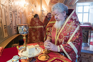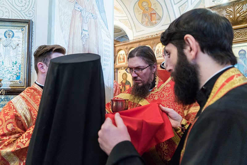 Перед причащением мирян проповедь о житии, архиерейском служении в Воронеже и страданиях за Христа ныне прославляемого священномученика Петра, архиепископа Воронежского, произнес настоятель Покровского собора Воронежа протоиерей Сергий Моздор.