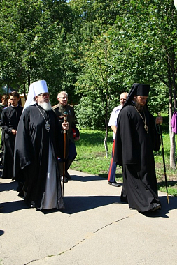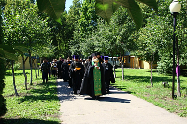 В завершение был совершен чин о панагии и состоялся крестный ход вокруг монастыря с иконой преподобного Серафима Саровского.