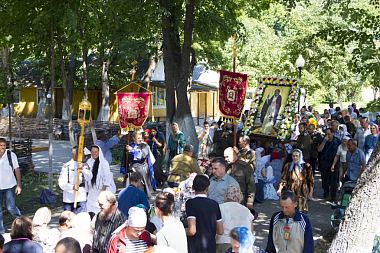 Молитвенно почтить память святого покровителя обители собрались представители казачества, многочисленные паломники, а также участники крестных ходов, совершившие шествие с 28 июля по 1 августа из городов Борисоглебской епархии в Серафимо-Саровский мужской монастырь.