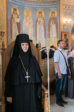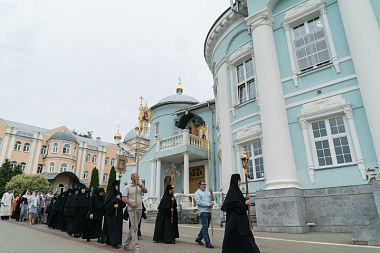 По отпусте Литургии был отслужен молебен небесному покровителю обители святителю Алексию и состоялся крестный ход вокруг соборного храма.