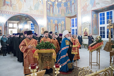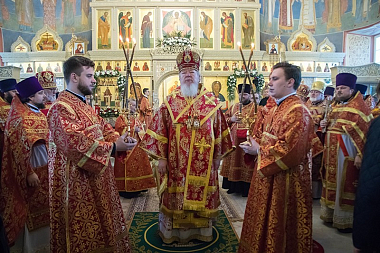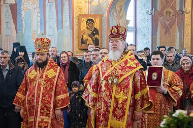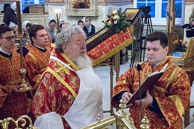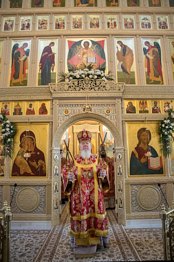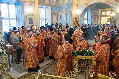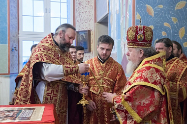 В завершение Его Высокопреосвященство поблагодарил всех собравшихся за поздравления и благие пожелания, а затем произнес слово архипастырского назидания, в котором отметил значение для Воронежского края святительского подвига ныне прославляемого священномученика Петра, архиепископа Воронежского.