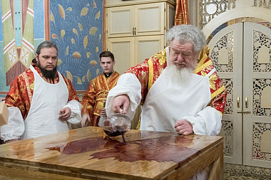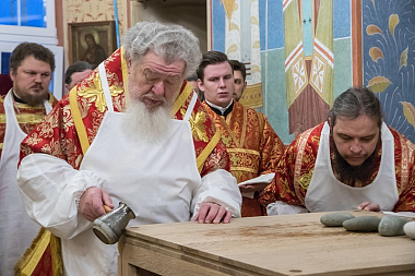 Освящение храма, совершаемое архиереем, одно из самых торжественных церковных богослужений. Чин освящения храма включает в себя: устройство престола (святой трапезы), омовение и помазание его святым миром; облачение престола и жертвенника; окропление святой водой и помазание святым миром стен храма; перенесение и положение под престолом и в антиминс частиц святых мощей; заключительные молитвы, сугубую ектению, отпуст, многолетие и окропление храма и верующих святой водой, совершаемое архиереем с кафедры в середине храма. Через эти священнодействия храм, созданный человеческими руками, обретает особую благодать Божию и становится вместилищем святыни. «Исполнимся во благих дому Твоего, свят храм Твой, дивен в правде», – восклицал святой царь и псалмопевец пророк Давид (Пс. 64:5–6).