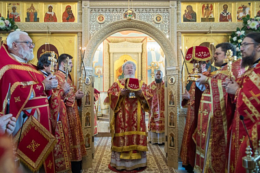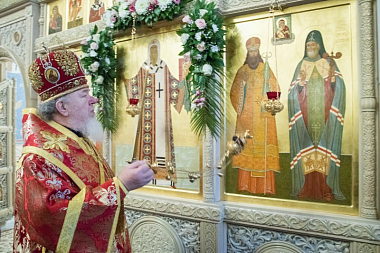 После отпуста Литургии митрополит Сергий с сослужащим духовенством совершил славление у иконы священномученика Петра в центре храма и возгласил молитву ныне прославляемому Воронежскому архипастырю, праведной жизнью и мудрым словом возвратившему множество духовенства из обновленческого раскола и сохранившему верность Господу до своей страдальческой кончины в Соловецком лагере († 1929).