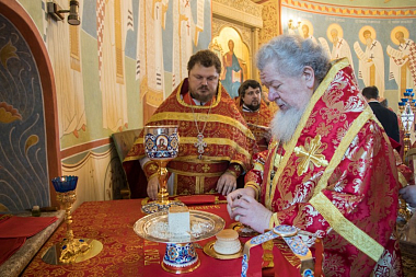 По совершении чина великого освящения митрополит Сергий возглавил служение в новоосвященном храме Божественной литургии.