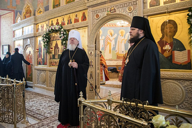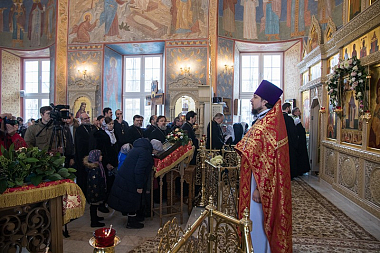 За богослужением молились настоятельница Алексиево-Акатова монастыря игумения Варвара (Сажнева), монашествующие сестры и послушницы, прихожане и паломники святой обители.