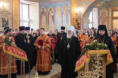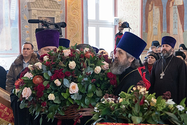 День великого освящения храма совпал с 90-летием со дня преставления священномученика Петра, архиепископа Воронежского, который во время своего пребывания в Воронеже часто совершал архиерейские богослужения в этом соборном храме Алексиево-Акатовой обители.