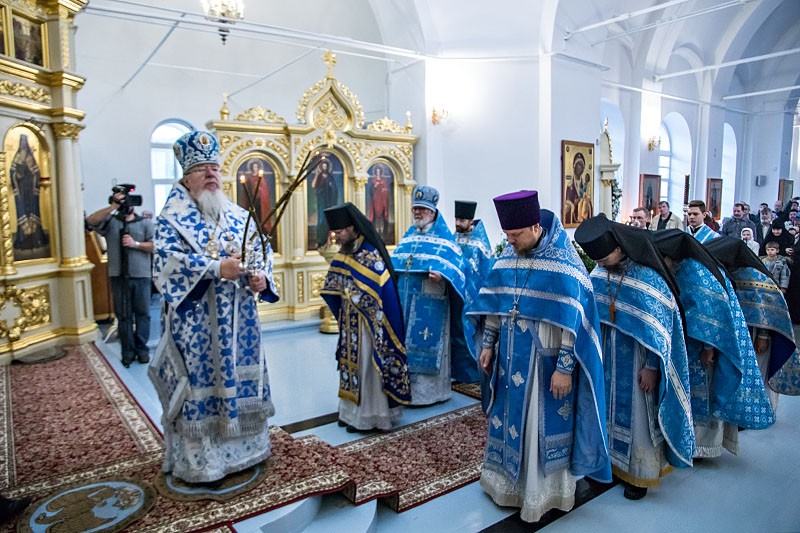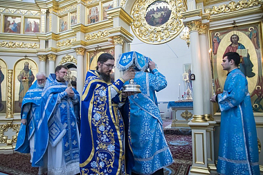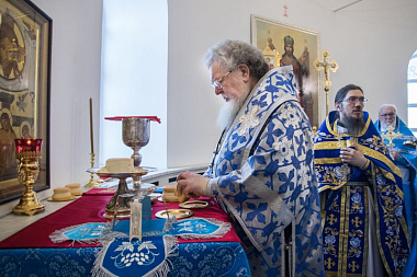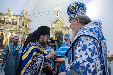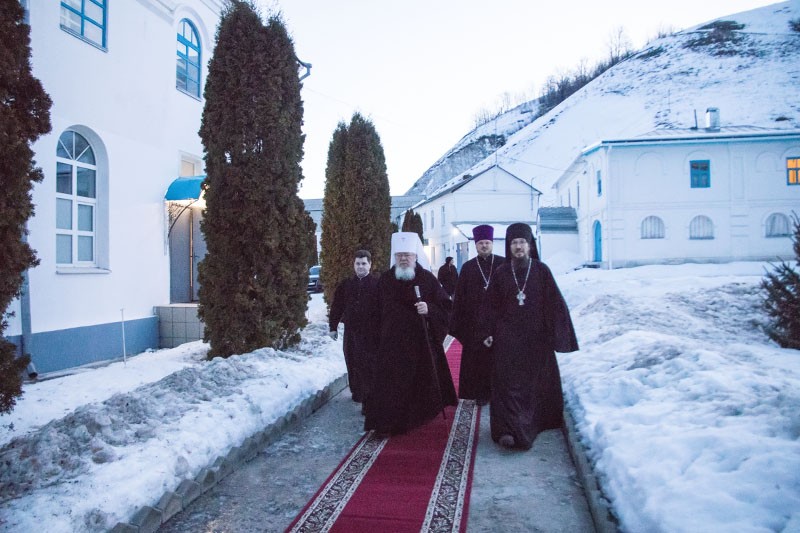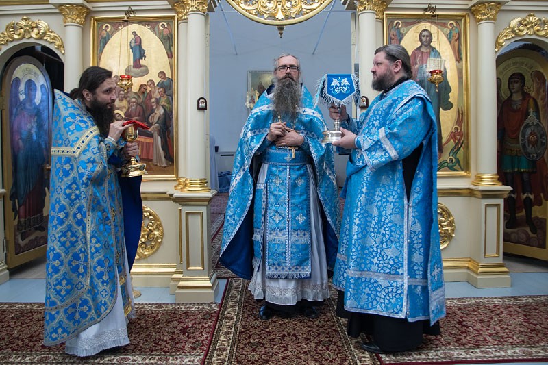 В завершение праздника духовенство и монашествующая братия с пением псалма направились в монастырскую трапезную, где в установленное время был совершен чин о панагии.