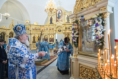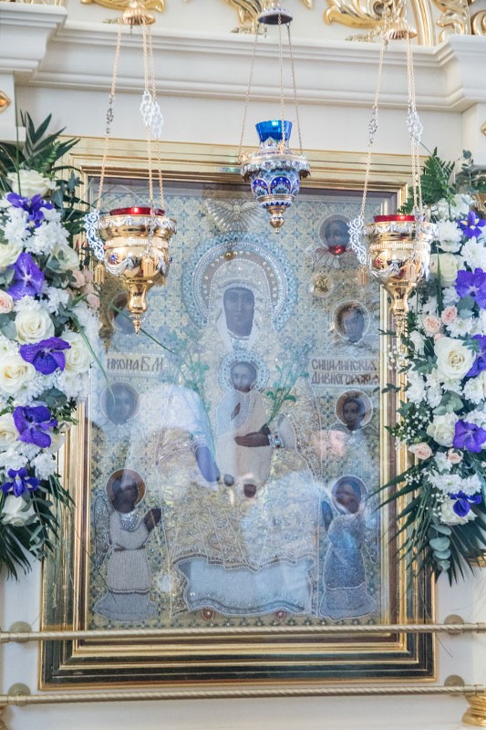 По окончании Литургии митрополит Сергий с сослужащим духовенством совершил славление Дивногорской-Сицилийской иконе Божией Матери. Попеременно хором и священнослужителями были исполнены тропарь и кондак, а затем все молящиеся, духовенство, монашествующие и миряне воспели молитвенную песнь Пресвятой Богородице «Царице моя Преблагая» и величание.