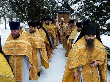 Его Высокопреосвященству сослужили: наместник Свято-Троицкого Болдина монастыря архимандрит Антоний (Мезенцов) с братией; наместник монастыря Новоордынской Поречской Богородице-Рождественской пустыни д. Бакланово Демидовского района игумен Хрисанф (Шадронов), наместник Спасо-Преображенского Авраамиева мужского монастыря г. Смоленска игумен Николай (Золотов); секретарь Управления Смоленской епархии иерей Владислав Баган; благочинный Ярцевского церковного округа протоиерей Василий Мовчанюк; благочинный Демидовского церковного округа протоиерей Александр Миронов; благочинный Борисоглебского церковного округа протоиерей Андрей Мельничук; благочинный Петропавловского церковного округа иерей Дионисий Давыдов; руководители отделов Смоленской епархии: руководитель Отдела по взаимодействию Церкви с обществом и СМИ протоиерей Валерий Рябоконь, руководитель Отдела по религиозному образованию и катехизации иерей Александр Коржаков; руководитель Отдела по работе с молодежью иерей Андрей Волков.
