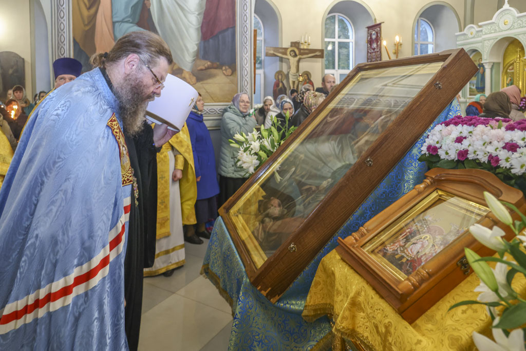 Его Высокопреосвященству сослужили митрофорный протоиерей Михаил Ильинский, протоиерей Александр Сарычев, протоиерей Андрей Махоренко, протоиерей Виктор Лисюнин, протоиерей Иоанн Каширский, священник Михаил Замкивский, священник Александр Митянин, иеромонах Зосима (Клинков), диакон Константин Полозов и диакон Павел Попов.