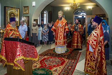 Его Высокопреосвященству сослужили настоятель монастыря игумен Пимен (Семилетов), клирики обители священник Александр Попов и иеродиакон Феодосий (Пронин), а также клирики Спасо-Преображенского кафедрального собора города Тамбова протоиерей Андрей Махоренко и диакон Константин Полозов.