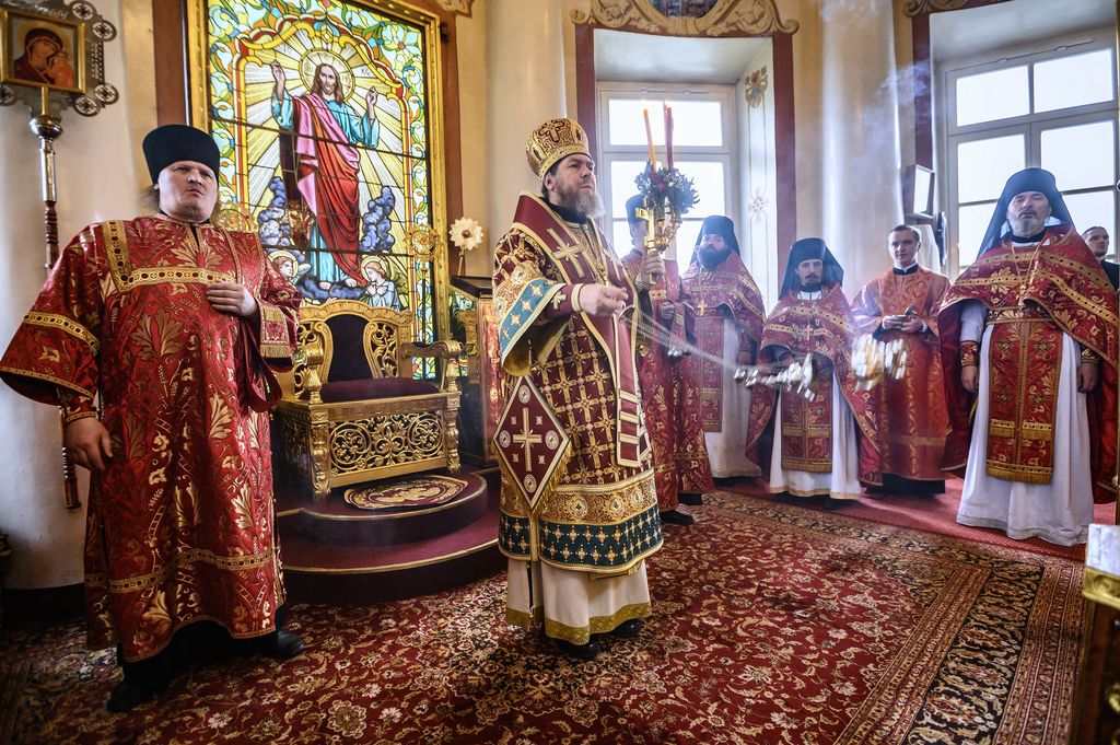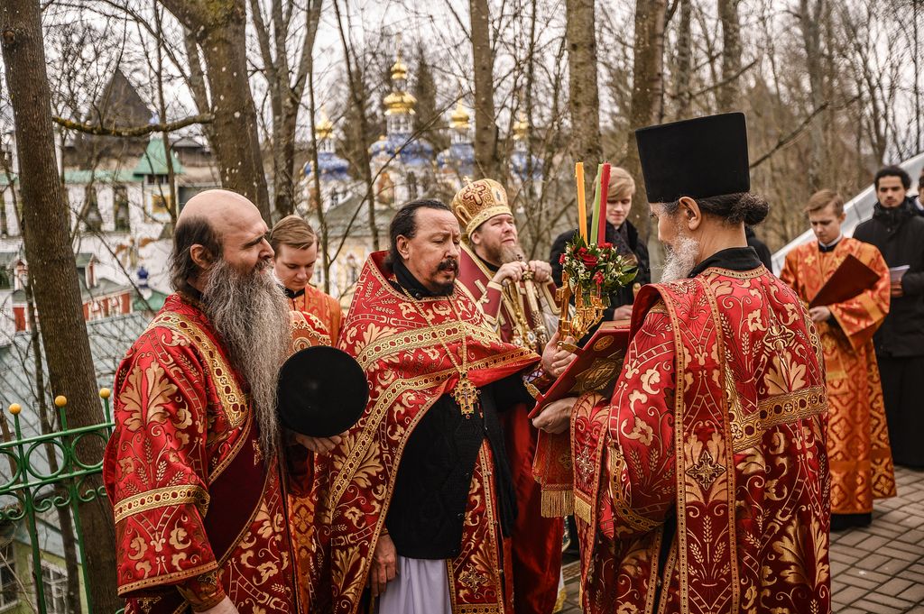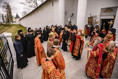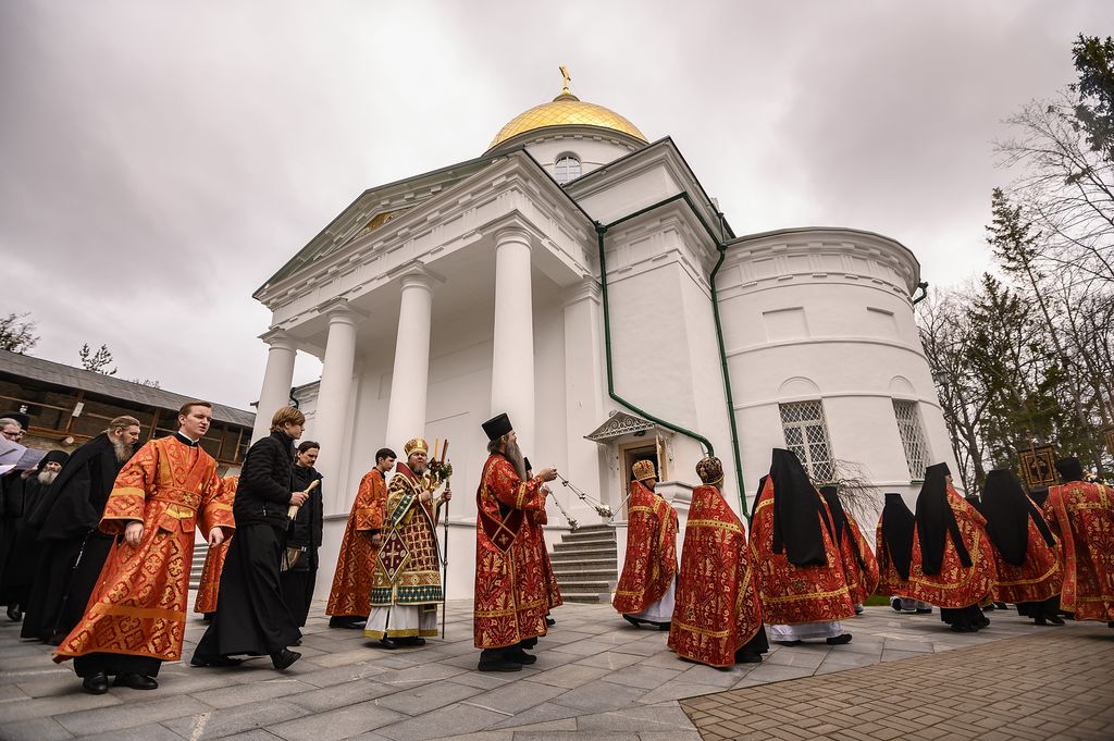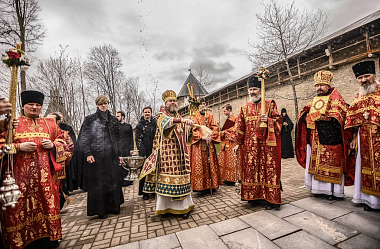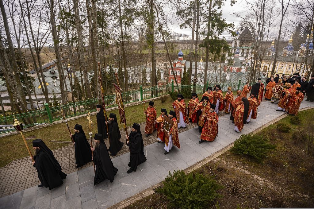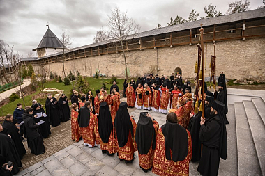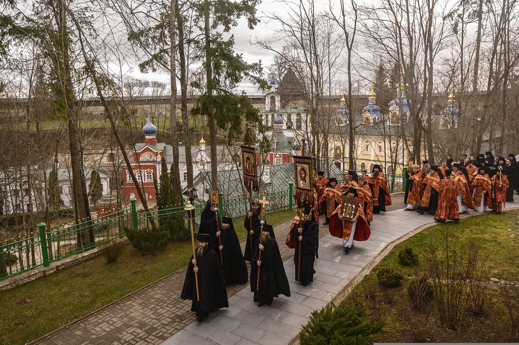 21 апреля 2020 года, во вторник Светлой седмицы, митрополит Псковский и Порховский Тихон совершил Божественную литургию с пасхальным крестным ходом в Свято-Успенском Псково-Печерском мужском монастыре.