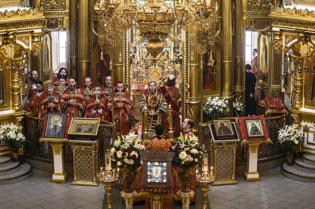 За богослужением молились насельники монастыря.